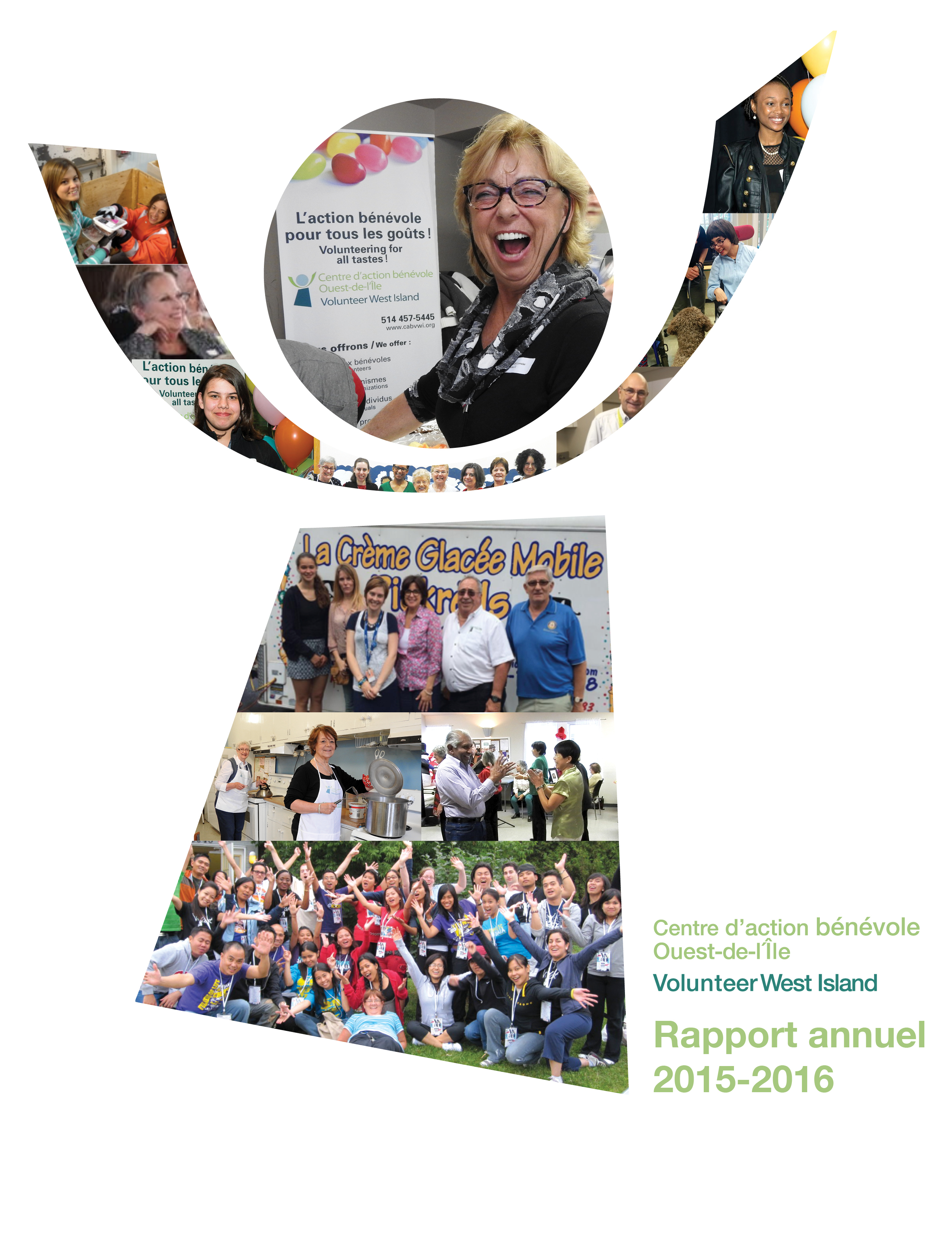 The design for the 2016 annual report focused on the volunteers inserted in the logo to demonstrate community groups with in Volunteer West Island. The annual report was created using InDesign CS6 and Photoshop CS6.
